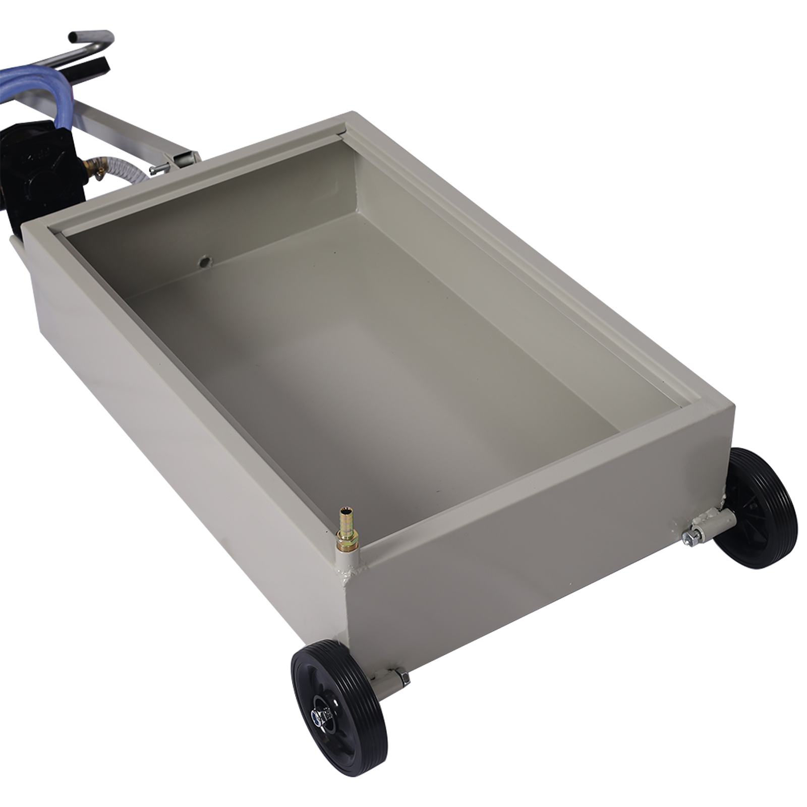 • Our oil drain pan is constructed with two 6'' wheels and two 3'' swivel casters for smooth operation and movement.